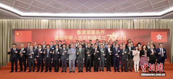 9月25日晚上,香港潮汐协会在香港庆祝了一个庆祝新中国基金会76周年的活动。照片显示了客人。 (由香港特殊管理区域政府信息局提供的照片)